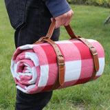 Waterproof Picnic Blanket 79" x 59" Soft Fleece Thick Beach Mat Red Check